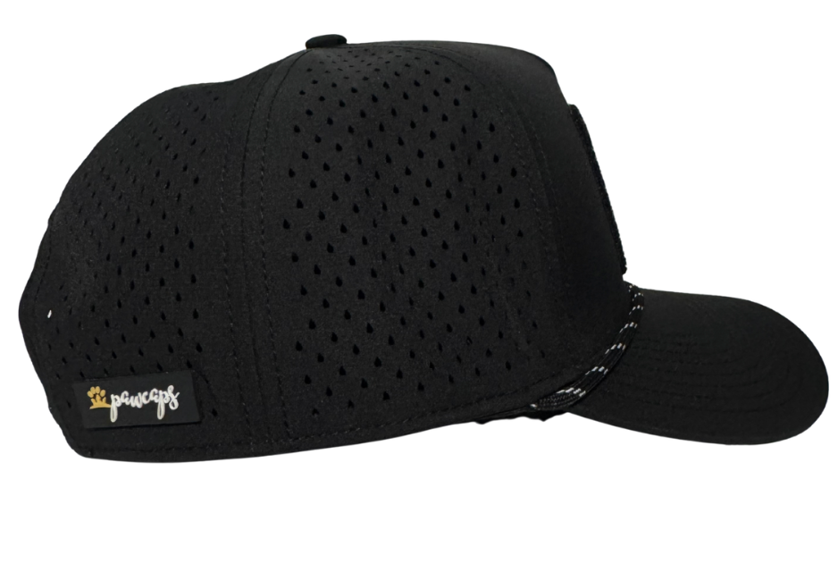 MIX AND MATCH (ONE PATCH INCLUDED). CUSTOM LASER CUT PERFORATED WITH MESH ROPE. 5 PANEL WATERPROOF CAP. *ADDITIONAL VELCRO PATCHES SOLD SEPARATELY.