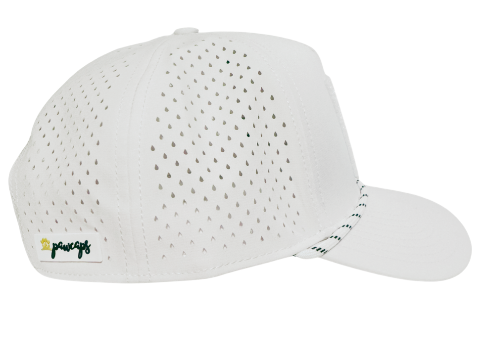 MIX AND MATCH (ONE PATCH INCLUDED). CUSTOM LASER CUT PERFORATED WITH MESH ROPE. 5 PANEL WATERPROOF CAP. *ADDITIONAL VELCRO PATCHES SOLD SEPARATELY.