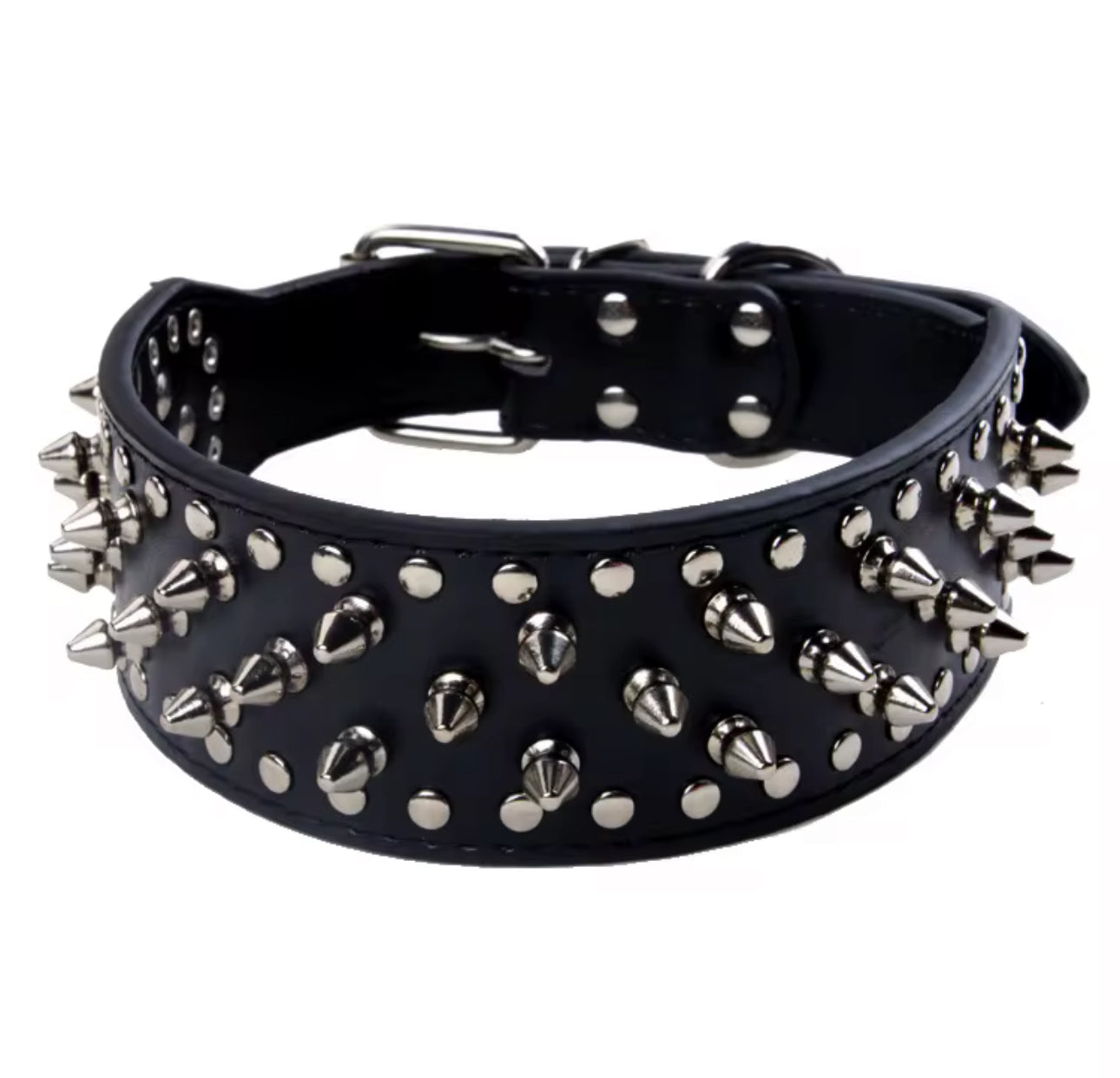 ADJUSTABLE 2" LEATHER SPIKED DOG COLLAR